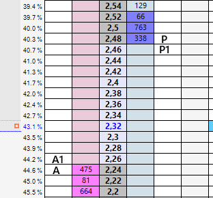 These odds are easily identifiable on a back or lay book, as shown in the following figures. The most profitable odds are those on the side of the spread that makes the bet most profitable. This means that for a back, it is the lowest odds available for laying, and vice versa for a lay, it is the highest odds available for backing. The risk with this approach is having to wait for book movements to see the bet matched.